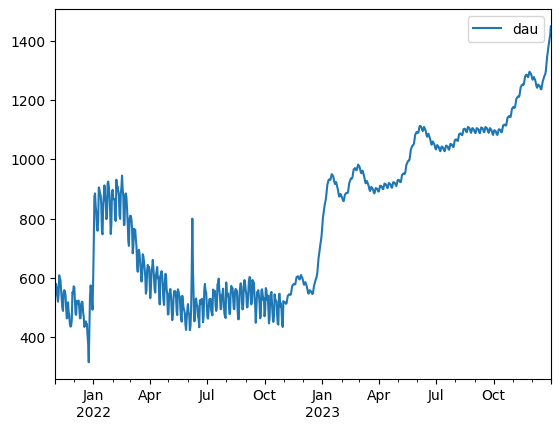 .set_index('dau']]).plot() pd.concat([dau_true, dau_pred[